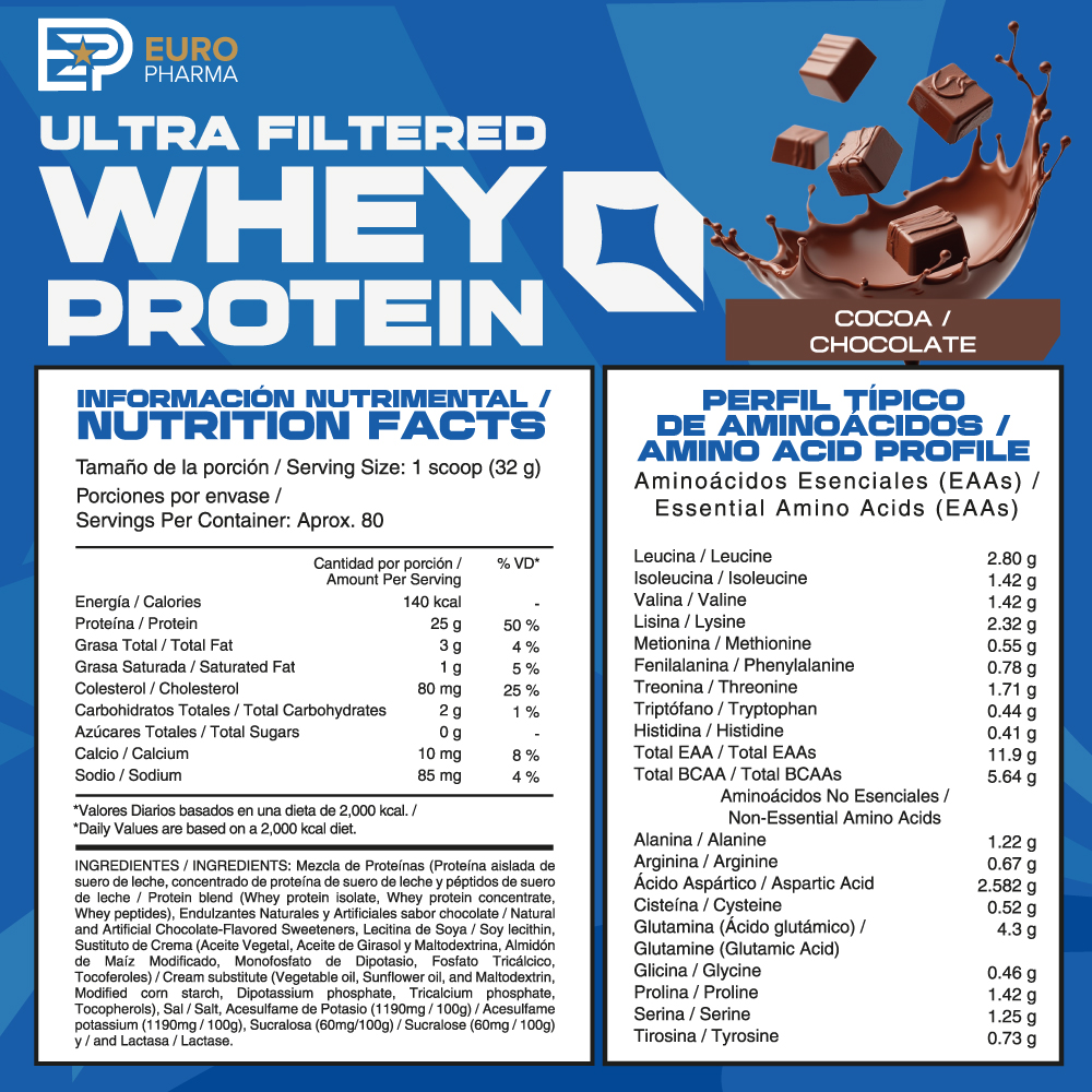 Suplemento Alimenticio en Polvo a Base de Proteína Aislada de Suero de Leche + Concentrado de Proteína de Suero de Leche